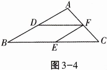 8. 如图3-4,在$\triangle ABC$中,$AB= 3$,$BC= 4$,$D$,$E$,$F分别为AB$,$BC$,$AC$的中点,连接$DF$,$FE$,则四边形$DBEF$的周长是