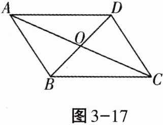 6. 如图3-17,$□ ABCD的对角线相交于点O$,且$AB= 5$,$\triangle OCD$的周长为23,则$□ ABCD$的两条对角线的和是(