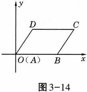 2. 如图3-14,在平面直角坐标系中,$□ ABCD的顶点A$,$B$,$D的坐标分别是(0,0)$,$(5,0)$,$(2,3)$,则顶点$C$的坐标是(