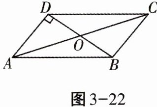 11. 如图3-22,$□ ABCD的对角线AC$,$BD相交于点O$,$\angle ADB= 90^{\circ}$,$AC= 12$,$OD= 3$,则$AD= $