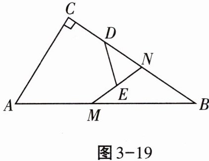 8. 如图3-19,在$Rt\triangle ABC$中,$\angle C= 90$,$AC= 6$,$BC= 8$,点$N是BC$边上一点。点$M为AB$边上的动点(不与点$B$重合),点$D$,$E分别为CN$,$MN$的中点,则$DE$的取值范围为(