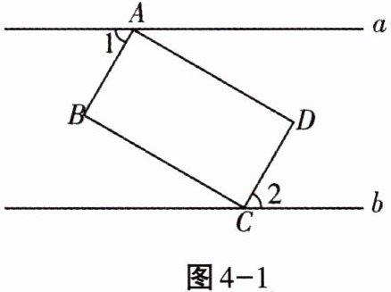 1. 如图4-1,矩形ABCD的顶点A,C分别在直线a,b上,且a//b,∠1= 60°,则∠2的度数为(
