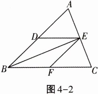 3. 如图4-2,在△ABC中,DE//BC,EF//AB,要判定四边形DBFE是菱形,还需要添加的条件是(