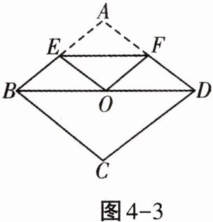 4. 如图4-3,将边长为4的菱形ABCD纸片折叠,使点A恰好落在对角线的交点O处,若折痕EF= 2√3,则∠A的度数为(