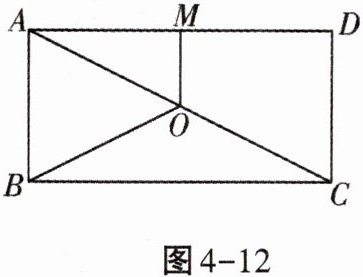 1. 如图4-12,点O是矩形ABCD的对角线AC的中点,OM//AB交AD于点M,若OM= 3,BC= 10,则OB的长为(