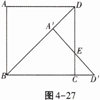 11. 如图4-27,在正方形ABCD中,AD= 1,将△ABD绕点B顺时针旋转45°得到△A'BD',此时A'D'与CD交于点E,则DE=