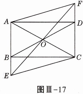19. (8分)如图Ⅲ-17,在矩形ABCD中,O是AC与BD的交点,过O点的直线EF与AB、CD的延长线分别交于点E,F.