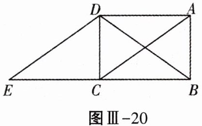 22. (8分)如图Ⅲ-20,在矩形ABCD中,连接对角线AC,BD,将$\triangle ABC$沿BC方向平移,使点B移到点C,得到$\triangle DCE$.