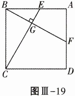 21. (8分)如图Ⅲ-19,四边形ABCD是正方形,E,F分别是边AB,AD上的一点,且$BF⊥CE$,垂足为G,求证:$AF= BE$.