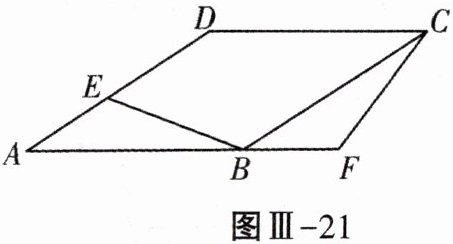 23. (8分)如图Ⅲ-21,在菱形ABCD中,点E是边AD上一点,延长AB至点F,使$BF= AE$,连接BE,CF.
