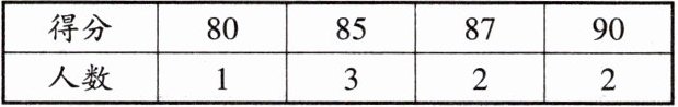 3. 今年4月,全国山地越野车大赛在某地举行,其中8名选手某项得分如下表: