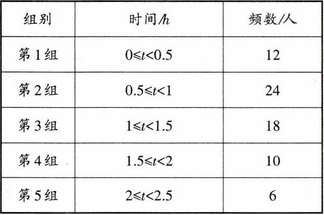 6. 某校抽样调查了七年级学生每天体育锻炼的时间,整理数据后制成了如下所示的频数分布表,这个样本的中位数在第