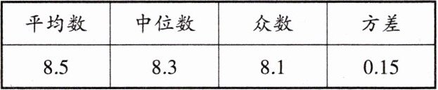 (2)分别运用表中的四个统计量,简要分析这两名队员的射击训练成绩. 若选派其中一名参赛,你认为应选哪名队员?从平均成绩看,甲、乙二人的成绩相等,均为7环;从中位数看,甲射中7环以上的次数小于乙;从众数看,甲射中7环的次数最多;而乙射中8环的次数最多;从方差看甲的成绩比乙的成绩稳定.综合以上各因素,若选派一名队员参加比赛,可选择
