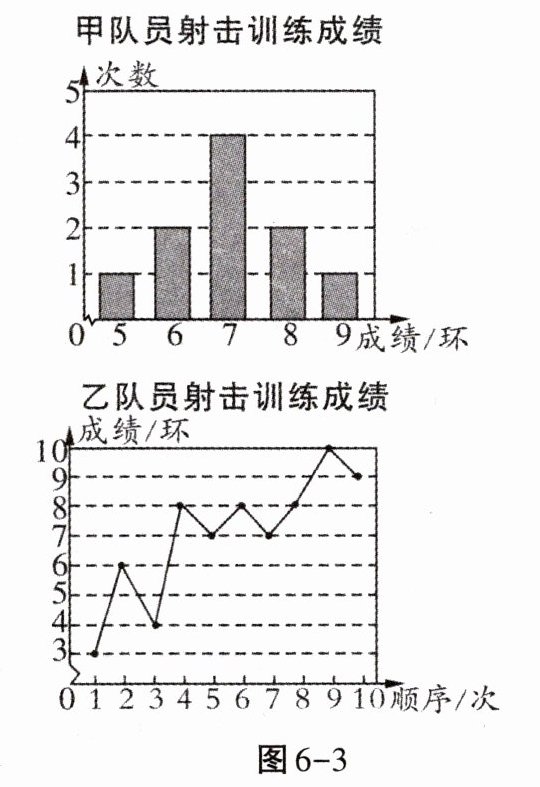 5. 甲、乙两名队员参加射击训练,成绩分别被制成图6-3所示的两个统计图: