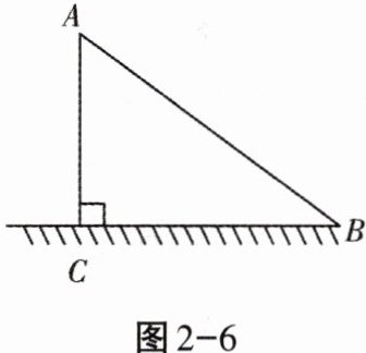 11. 如图2-6所示,已知一根长8m的竹竿在离地3m处($A$点)断裂,竹竿顶部($B$点)抵着地面,此时,顶部距底部的距离($BC$的长)为多少?