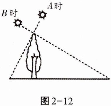 4. 如图2-12,小明在$A$时测得某树的影长为2m,$B$时又测得该树的影长为8m,若两次日照的光线互相垂直,则树的高度为______m.