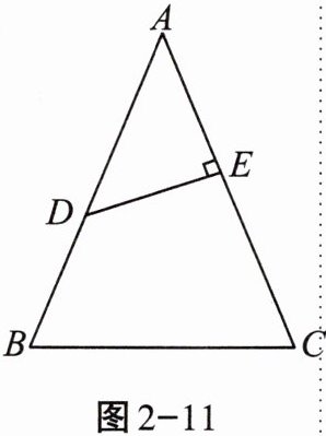 3. 如图2-11,在$\triangle ABC$中,$AB = AC = 13$,$BC = 10$,$D是AB$的中点,过点$D作DE\perp AC$,垂足为$E$,则$DE$的长是______.