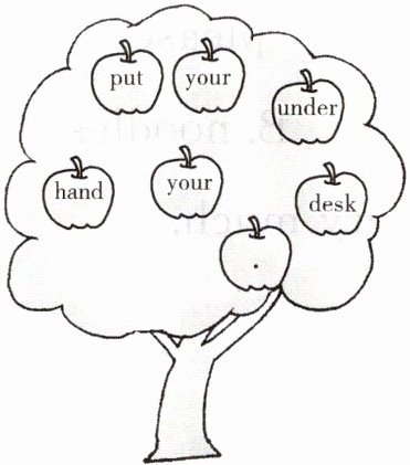 树上的苹果已经熟了,请你采摘下来,再给它们排好队。(连词成句)