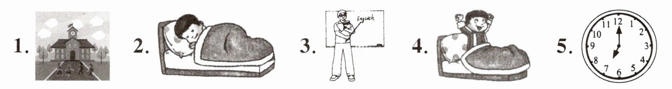 )4. A. go to bed B. get up C. go to school(