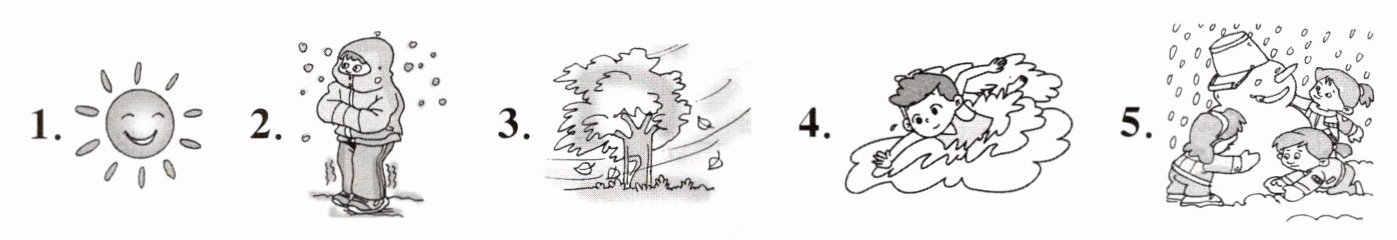 1. warm 2. cloudy 3. snowy 4. weather 5. windy