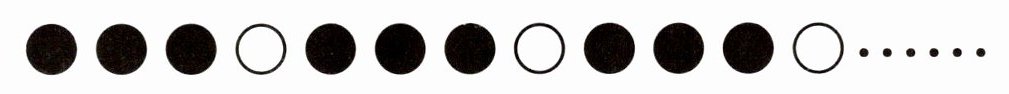 【解析】:观察可得,棋子是以“3黑1白”为一组循环出现的,一组有$3 + 1 = 4$颗棋子。