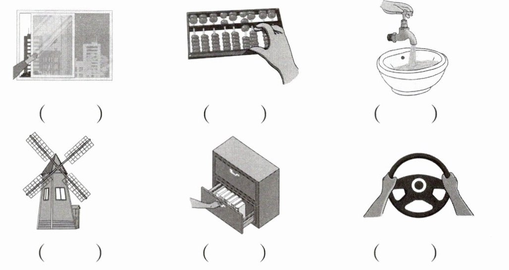 1. 下列现象哪些是平移?哪些是旋转?(平移的画“—”,旋转的画“○”)