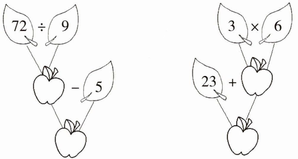 $8$,$3$,$72÷9 - 5$;$18$,$41$,$23 + 3×6$。