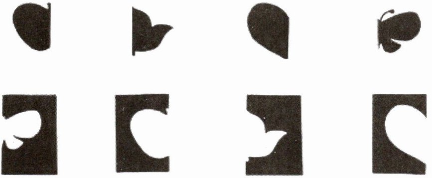 【解析】:通过观察图案的形状特征进行匹配。第一行第一个图案形状类似半圆,与第二行第二个图案(类似半圆缺失部分)匹配;第一行第二个图案有类似叶子形状,与第二行第三个图案(有叶子形状缺失部分)匹配;第一行第三个图案类似心形一部分,与第二行第四个图案(有心形缺失部分)匹配;第一行第四个图案是蝴蝶形状,与第二行第一个图案(有蝴蝶形状缺失部分)匹配。