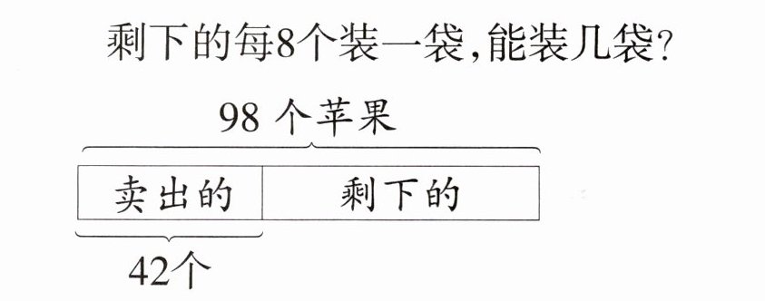 解:首先计算剩下的苹果数量:$98 - 42 = 56$(个)
