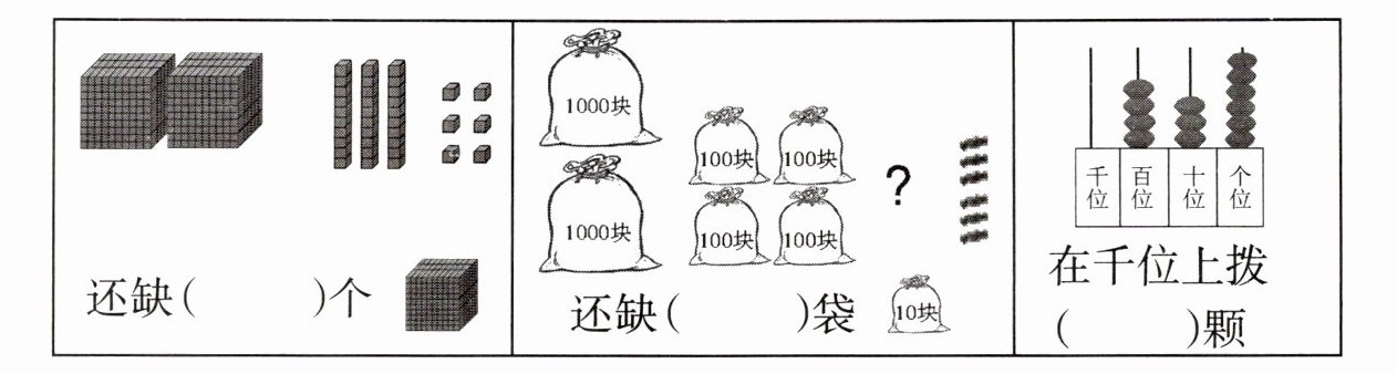 3. 看图列式计算。剩下的每8个装一袋,能装几袋?