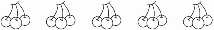 【解析】:图中每组有$3$个樱桃,一共有$5$组。求樱桃总数用乘法,即每组个数乘以组数;已知总数和每组个数求组数用除法,即总数除以每组个数。