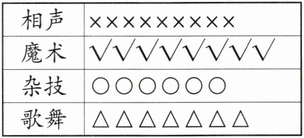 2. 下面是小云记录的同学们喜欢的儿童节节目的情况。
