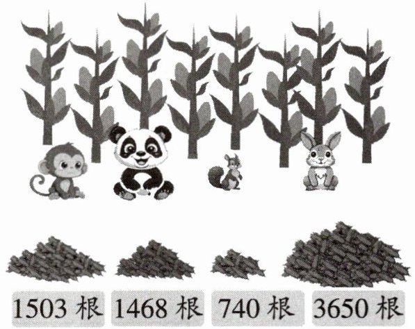 (2)按照从大到小的顺序排列四个小动物收的玉米的数量。