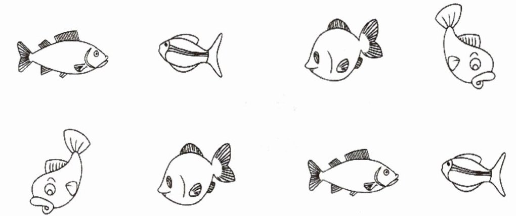 (1)下面哪些小鱼可以通过平移相互重合? 连一连。
