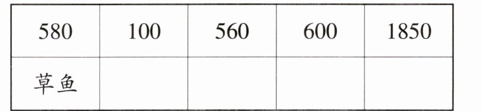 (2)鱼塘里有草鱼580尾,鲤鱼比草鱼少一点,鲫鱼比草鱼多得多。鲤鱼和鲫鱼各有多少尾?把名称写在表格里。