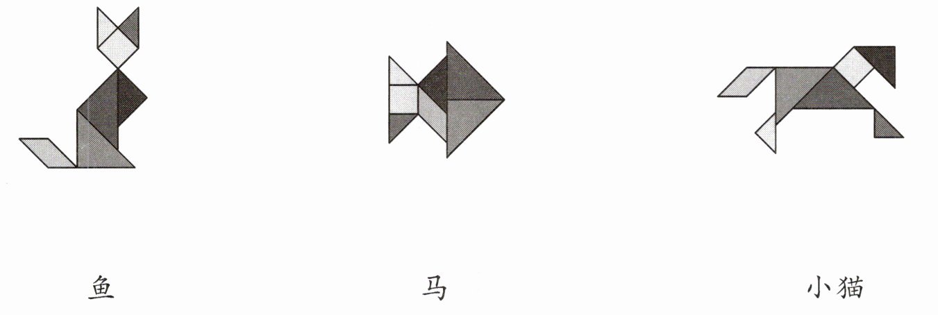 1. 下面用七巧板拼成的图形像什么?连一连。
