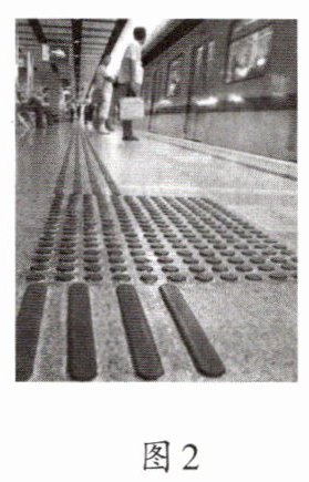 3. 盲道是为盲人提供行路方便和安全的道路设施,一般由两种砖铺成。一种是条形引导砖,引导盲人放心前行,称为行进盲道;一种是有圆点的提示砖,提示盲人前面有障碍,该转弯或上、下坡了,称为提示盲道。图2中砖上的条形或圆点高出地面5mm,当盲人走在上面时(