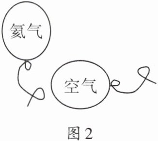 5. 四月春暖花开,正是踏青露营的好时节。在公园里随风飘扬的气球成了大家营造氛围的“新宠”。如图2所示,上浮的氦气气球和下沉的空气气球的体积相同,若氦气气球受到的浮力为$F_{1}$、空气气球受到的浮力为$F_{2}$,则它们所受浮力的大小关系是(