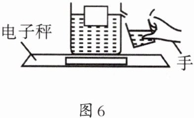 (3)同学们交流时,小华认为以上实验过程可以更加简化。如图6所示,只需将装满水的溢水杯放在电子秤上,将木块轻轻放入溢水杯的同时用手拿着小烧杯收集排开的水,等溢水杯中不再有水溢出时,拿走小烧杯,若观察到______