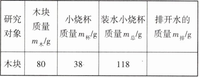 ③把木块轻轻放入装满水的溢水杯中,用小烧杯收集从溢水杯中排开的水。