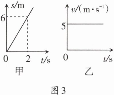 6. 物体在同一水平面上做匀速直线运动,当物体运动的路程与时间的关系图像如图3甲时,受到的水平推力为$ F_{1} $;当物体运动的速度与时间的关系图像如图3乙时,受到的水平推力为$ F_{2} $。$ F_{1} 和 F_{2} 做功的功率分别为 P_{1} $、$ P_{2} $。则$ F_{1}:F_{2} 和 P_{1}:P_{2} $依次为 (
