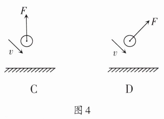 5. 某探测器的登陆舱与地面成45度角匀速靠近地球,如图3所示。关于该探测器所受阻力(用F表示)的方向,图4所示的选项中正确的是(