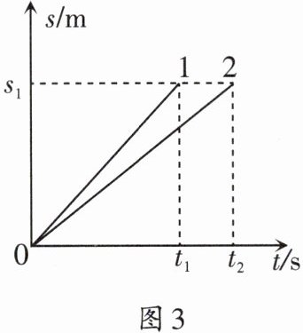 5. 在一次活动中,小明和小华先后在同一水平地面上沿水平方向拉着物体A做匀速直线运动,如图3所示为物体A两次运动的路程随时间变化的图像。下列判断正确的是(