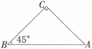 2. 直角三角形的内角和是180°,其中一个角是90°。已知∠B=45°,所以∠A=180°-90°-45°=45°。