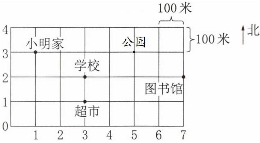 如图是小明家所在社区主要街道的平面图。小明的妈妈在图书馆工作,她每天下班后经过学校接小明回家。