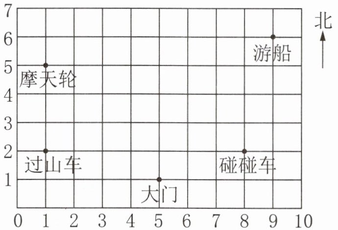 )方向。(3)晓月坐完碰碰车准备去坐游船,要向北走(