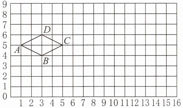 2.(先分别将$A$、$B$、$C$、$D$四个点向右平移$10$格,得到新的四个点,再将这四个新点向下平移$3$格,最后依次连接这四个平移后的点,画出平移后的平行四边形)。