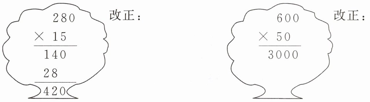 原计算过程存在错误,$600×50$,因为两个因数末尾一共有$2$个$0$,先计算$6×5=30$,再在$30$后面加上$3$个$0$,结果是$30000$,而不是$3000$。