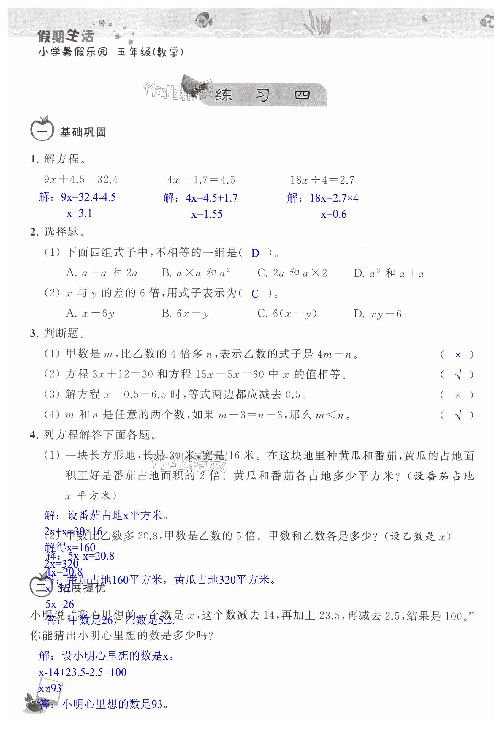 注:目前有些书本章节名称可能整理的还不是很完善,但都是按照顺序排列的,请同学们按照顺序仔细查找。练习册 2025年假期生活小学暑假乐园五年级数学人教版 答案主要是用来给同学们做完题方便对答案用的,请勿直接抄袭。