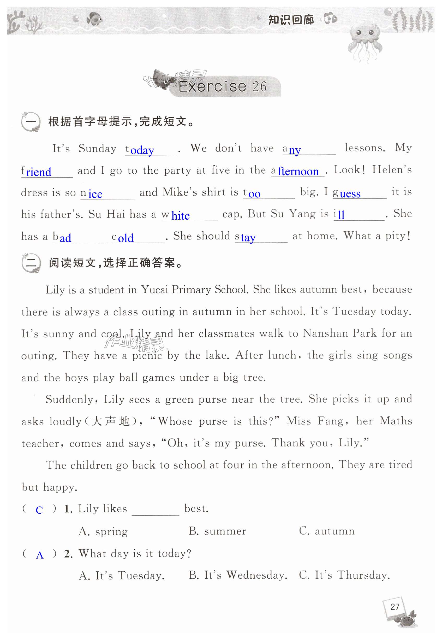 注:目前有些书本章节名称可能整理的还不是很完善,但都是按照顺序排列的,请同学们按照顺序仔细查找。练习册 2025年假期生活小学暑假乐园四年级英语人教版 答案主要是用来给同学们做完题方便对答案用的,请勿直接抄袭。